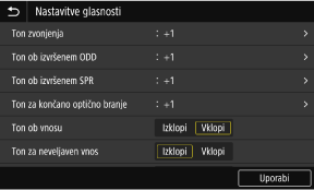 [Druge nast. glas.], je prikazan zaslon [Nastavitve glasnosti].