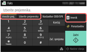 Vnesite številko faksa z numeričnimi tipkami ali pa izberite registriranega prejemnika, da izvedete telefonski klic.