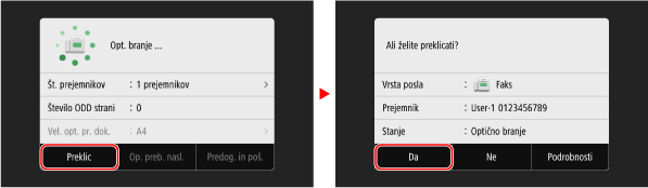 Pošiljanje faksa lahko prekličete tako, da upoštevate navodila na zaslonu.