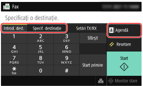 Specificați destinația în fila [Introd. dest.], fila [Specif. destinaţie] sau în [Agendă].