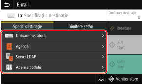 Utilizați [Agendă] sau [Apelare codată] pentru a specifica destinațiile Cc și Bcc.