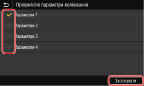 Установіть прапорці для параметрів, які потрібно призначити як кнопки дій, і натисніть [Застосувати].