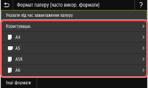 Натисніть [Інші формати] і виберіть розмір паперу у відображеному списку.
