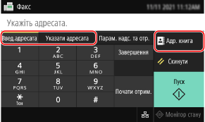 Укажіть місце призначення на вкладці [Введ.адресата], [Указати адресата] або [Адр. книга].