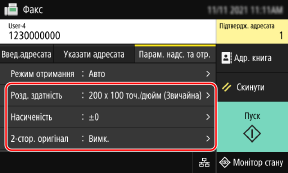 Укажіть місце призначення на вкладці [Введ.адресата], [Указати адресата] або [Адр. книга].