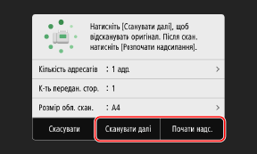 Коли сканування всіх документів буде виконано, натисніть [Почати надс.] або [Пер. й надісл.].