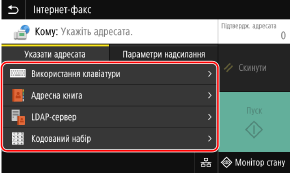Натисніть [Інтернет-факс].