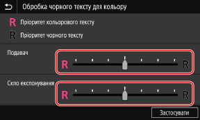 У розділі [Подавач] або [Скло експонування] виконайте налаштування, надавши пріоритет відтворенню кольорового чи чорного тексту.