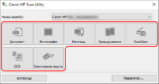 Виберіть драйвер сканера (ScanGear MF або WIA) пристрою та налаштуйте параметри сканування.