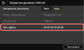 Можна переглянути MAC-адресу, установлену на апараті, якщо апарат підключений до проводової локальної мережі.