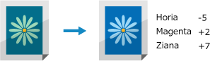 Horiaren, magentaren, zianaren eta beltzaren mailak doitu ditzakezu, originalarekiko leialagoak diren koloreekin edo originalarekin baino argiagoak diren koloreekin kopiatzeko.