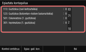 Inprimatutako orrialde-kopurua egiaztatzea (kontagailua egiaztatzea)