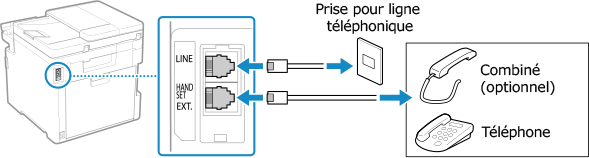 Utilisez le cordon téléphonique fourni pour connecter la machine à la ligne téléphonique.