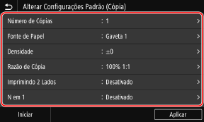Você pode alterar as configurações padrão de digitalização, cópia e outras funções acessadas no painel de operação.