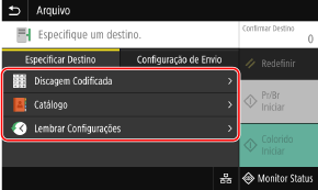 Ao enviar, se o destino de envio for restrito devido às Configurações de Autenticação da Função de Envio, você não poderá especificar outro destino. Para obter detalhes, entre em contato com o administrador.