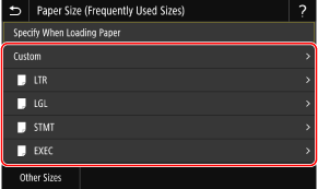 You can scroll the screen to view paper sizes (such as envelopes) not displayed on the screen.