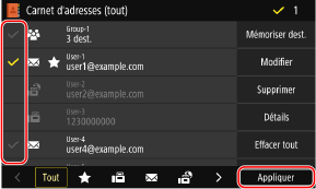 Cochez les cases des destinataires à spécifier, et appuyez sur [Appliquer].