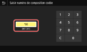 L'écran [Saisir numéro de composition codée] s'affiche.