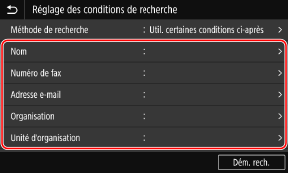 Sélectionnez [Méthode de recherche], puis sélectionnez les conditions de recherche.