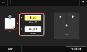 Sélectionnez [X] ou [Y] et saisissez la longueur de chaque côté en utilisant [+] et [-], avec
