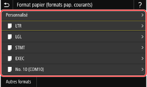 Appuyez sur [Autres formats], et sélectionnez le format de papier dans la liste affichée.