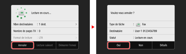 Vous pouvez annuler l'envoi d'un fax en suivant les instructions à l'écran.