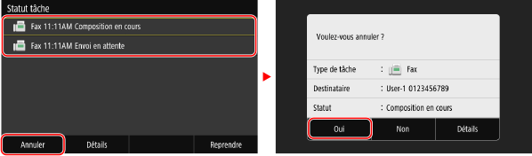 Si l'écran de la liste des tâches s'affiche, sélectionnez la tâche à annuler, puis appuyez sur [Annuler]