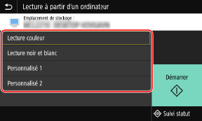 Sélectionnez le paramétrage de numérisation et appuyez sur [Démarrer].
