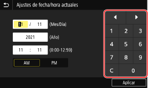 Toque los números de las teclas numéricas para introducir un valor.