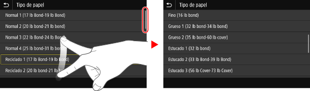 Mueva el dedo mientras toca la pantalla y suéltelo en la posición que desee. Puede desplazarse por listas y mover el área que está tocando hasta la posición que desee.