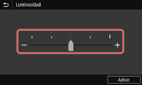 Toque los botones [+] y [-] para ajustar el valor. Si aparece el control deslizante tal y como se muestra a continuación, puede arrastrarlo a la izquierda o a la derecha para ajustar el valor.
