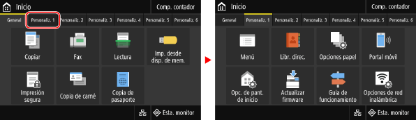 Si toca una pestaña, aparece la pantalla correspondiente a la pestaña seleccionada.