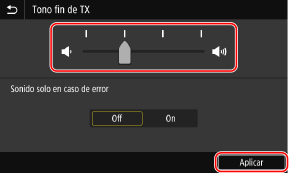 Para que se emite un sonido de finalización únicamente en caso de que se produzca un error, establezca [Sonido solo en caso de error] en [On].