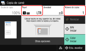 En el panel de control, pulse [Copia de carné] en la pantalla [Inicio].