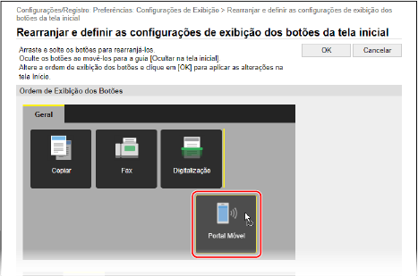 Em [Rearranjar e definir as configurações de exibição dos botões da tela inicial], selecione [Editar na Visualização de botão] ou [Editar na Visualização de lista].