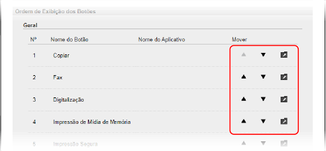 ] ao lado d nome do botão que deseja reorganizar para mover o botão para cima ou para baixo. Clique em [