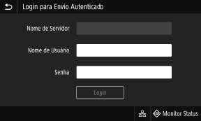 Quando o envio autenticado (Autenticação do servidor LDAP) está configurado, a tela de Login para Envio Autenticado é exibida ao executar operações de digitalização e fax. Digite o nome de usuário e a senha gerenciados com o servidor LDAP para fazer login.