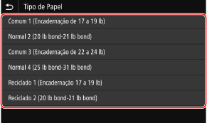 Selecione o tipo de papel a ser registrado.