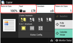 * [Seleção Automática de Papel (LTR/LGL)] não está disponível quando nenhum original está carregado no alimentador ou ao usar [N em 1], [Apagar Moldura], ou [Cópia do Cartão ID].