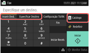 Especifique o destino na guia [Inserir Dest.], guia [Especificar Destino] ou [Catálogo].