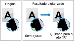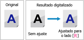 Ao digitalizar originais em cores, você pode fazer ajustes com prioridade para reproduzir texto quase preto (texto colorido) ou tornar o texto preto mais fácil de ver.