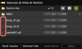 Tela de seleção de arquivos no dispositivo de memória USBVocê pode selecionar vários arquivos.