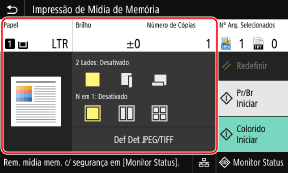 No painel de operação, pressione [Impressão de Mídia Memória] na tela [Início].