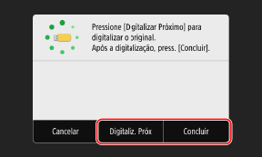 Para continuar digitalizando os originais, coloque na placa de vidro e pressione [Digitaliz. Próx].