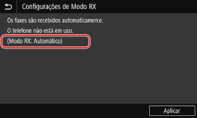Após a mensagem [Configurações definidas.] aparecer, a tela [Configurações de Modo RX] será exibida.