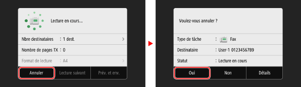 Vous pouvez annuler l'envoi d'un fax en suivant les instructions à l'écran.