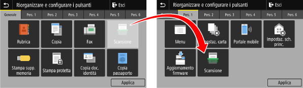 È possibile modificare la disposizione dei pulsanti nella schermata [Schermata princip.] e spostarli in altre schede.
