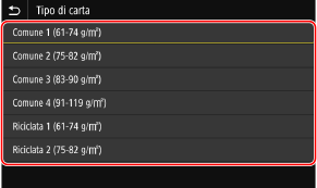 È possibile scorrere la schermata per visualizzare i formati carta (ad esempio buste) non visualizzati sullo schermo.