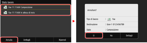 Se viene visualizzata una schermata dell'elenco lavori, selezionare il lavoro da annullare e premere [Annulla]