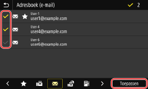 Selecteer de selectievakjes van de bestemmingen die u aan de groep wilt toevoegen, en druk op [Toepassen].